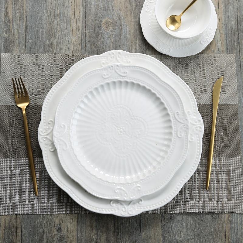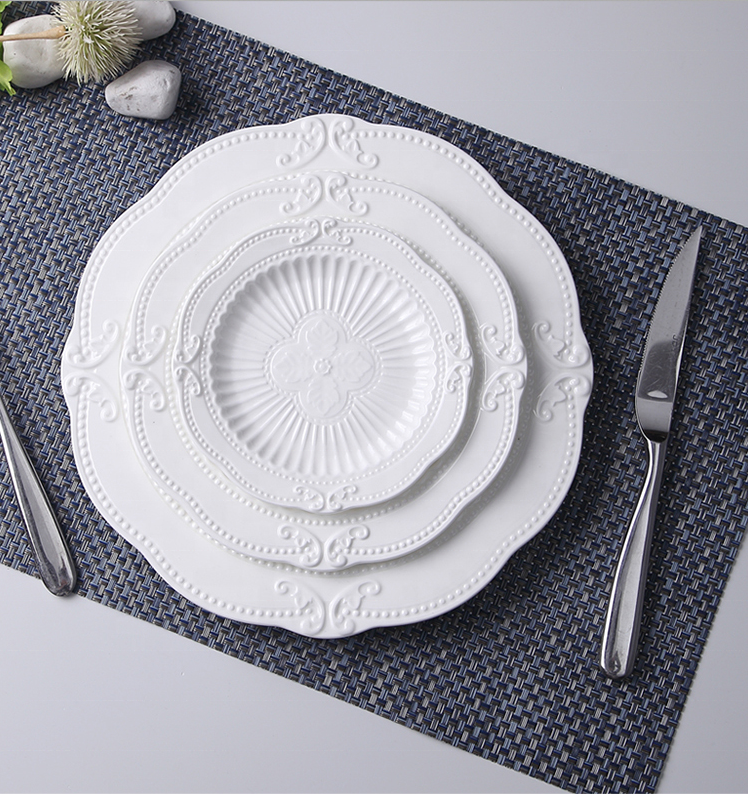Besta shanxi-vajilla de cerámica con relieve blanco, conjunto de platos de cena de boda real para evento de fiesta