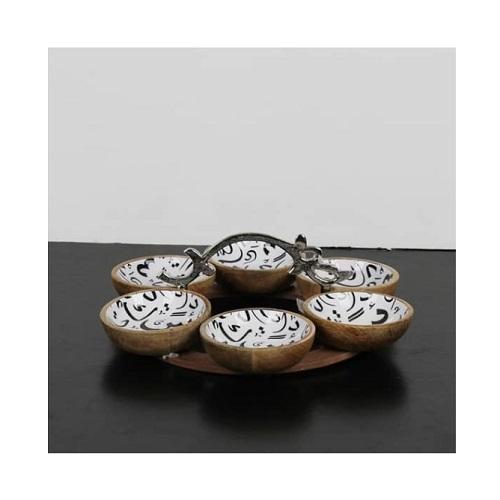 Bestest Diseño Tuercas Tazón para servir Acero Frutas secas Postre Tazón con bandeja de madera y fregona Tuercas Tazón para servir