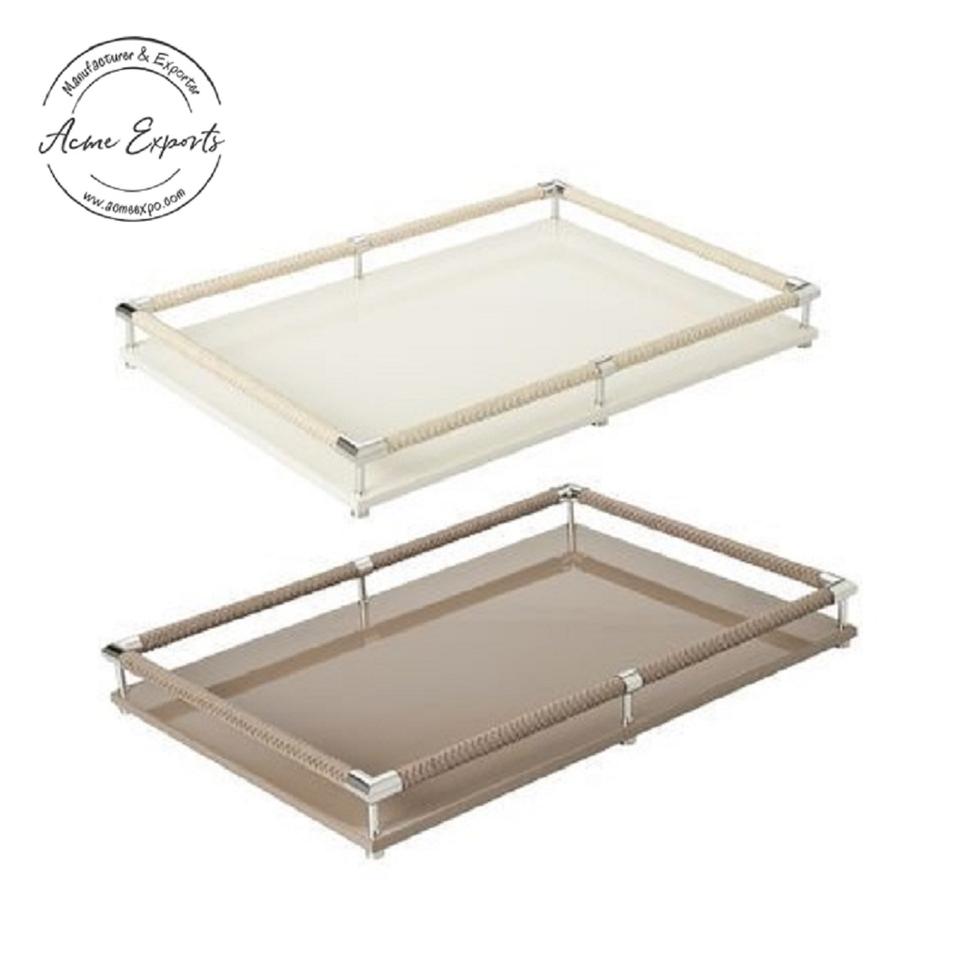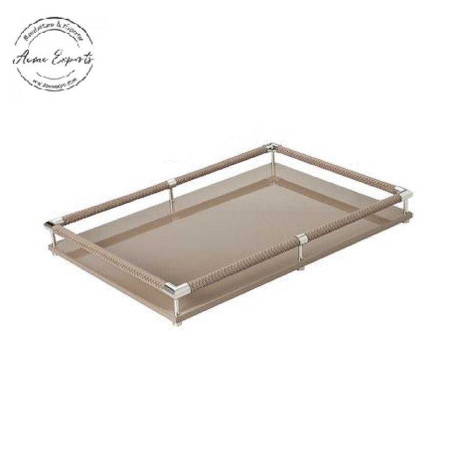 Bandeja para servir de mármol blanco hecha a mano de la mejor calidad decorativa con esquinas martilladas para servir platos y bebidas
