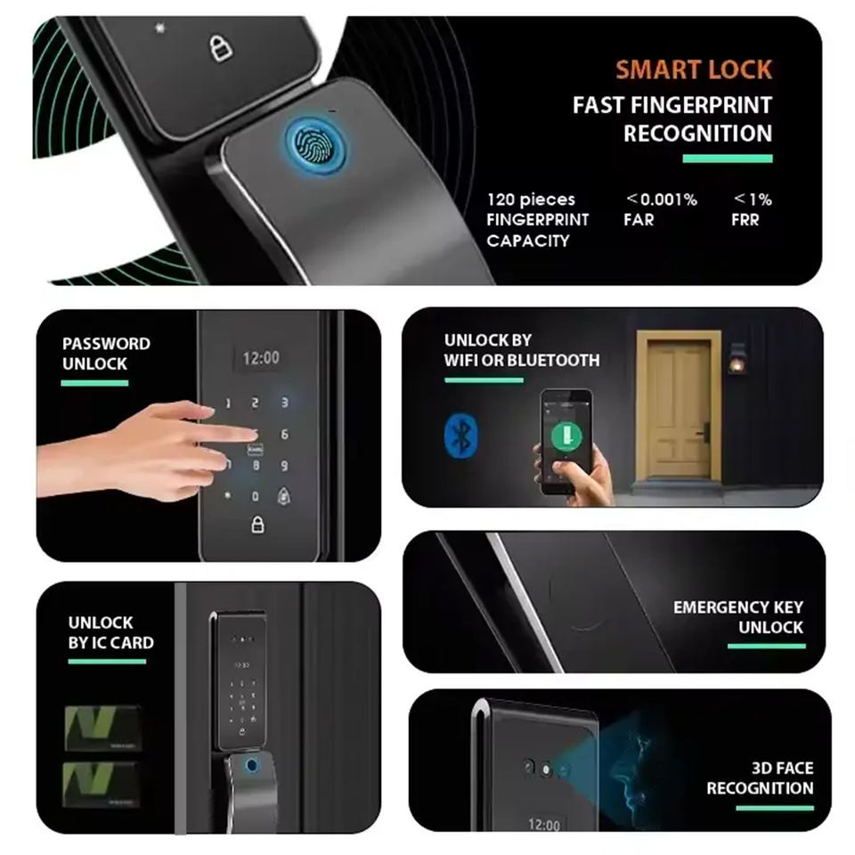 Desbloquear camino:Rostro/APP/Huella digital/Contraseña/Tarjeta/Llave