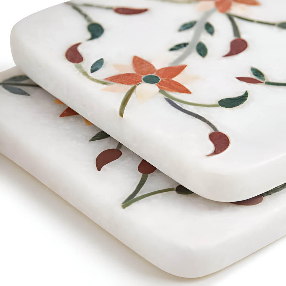 Juego de posavasos de té de cerámica hechos a mano con exquisitas incrustaciones de piedra fina india, posavasos de mármol blanco con incrustaciones de mármol blanco