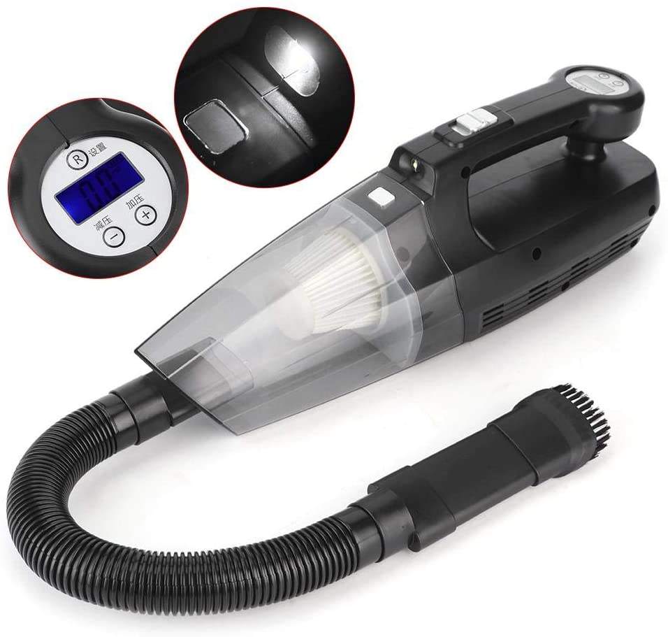 Bestseller Handheld Car Aspirador Inflador Medidor de presión de neumáticos 4 en 1 Lurking Hoover Mini Car Vacuum Led Light