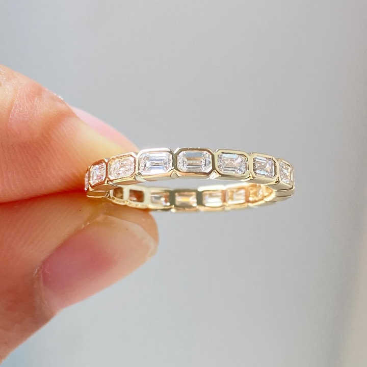 Anillo de Eternidad Horizontal con Diamantes Cultivados en Laboratorio, Corte Esmeralda, Engastados en Bisel, Oro de 14k, Anillo de Boda Minimalista con Esmeralda de 2ct