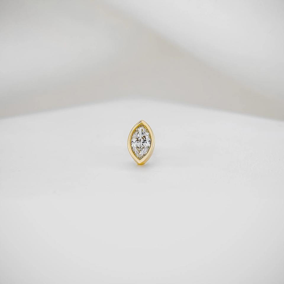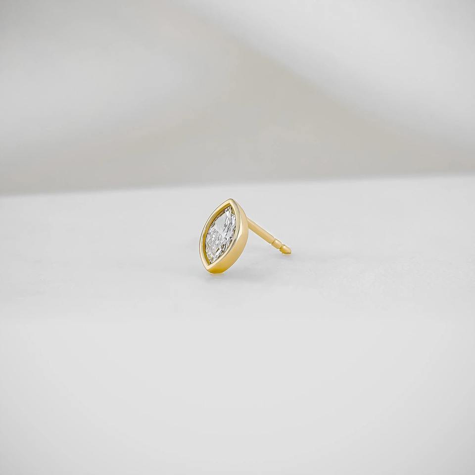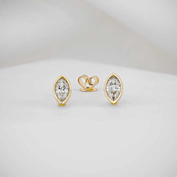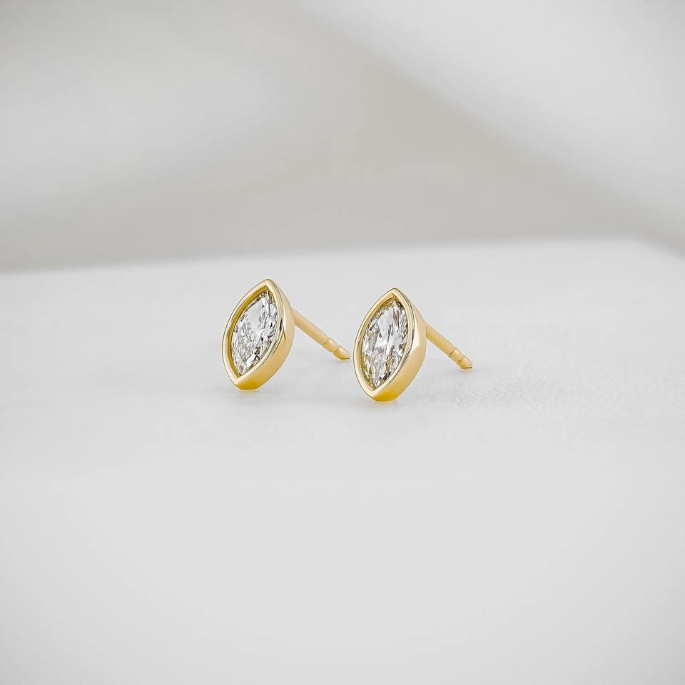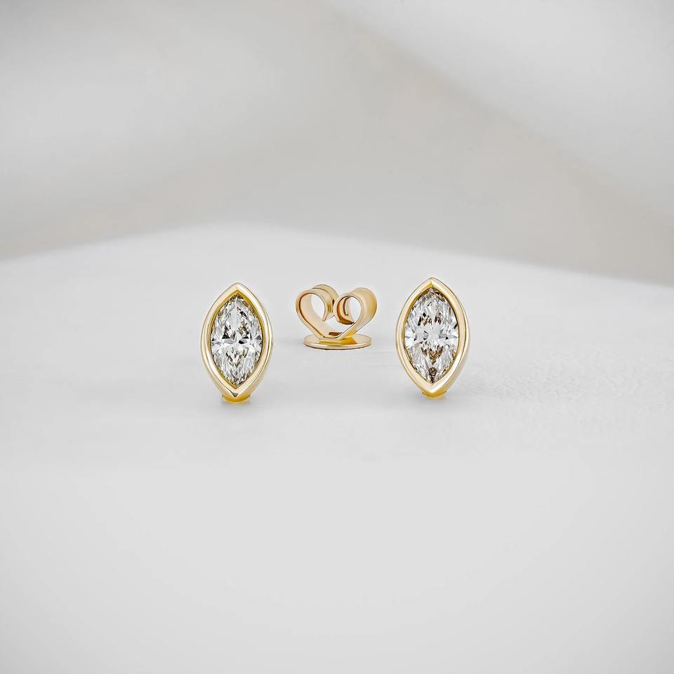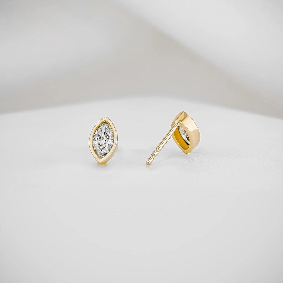 Pendientes de Diamantes Cultivados en Laboratorio con Corte Marquesa y Engaste de Bisel, Oro Sólido de 14K, Certificación IGI, Joyería Minimalista para Fiesta para Mujer