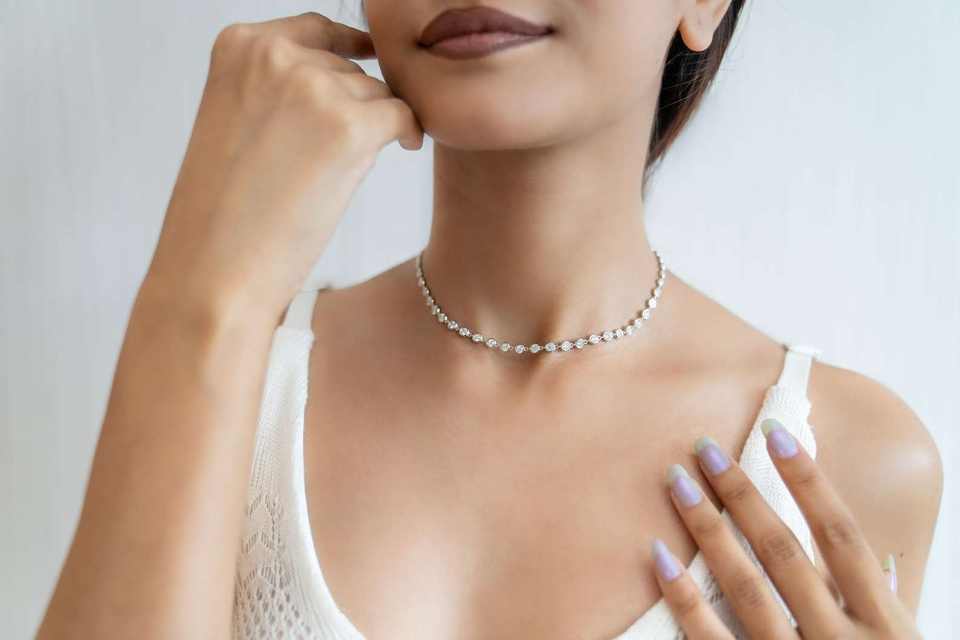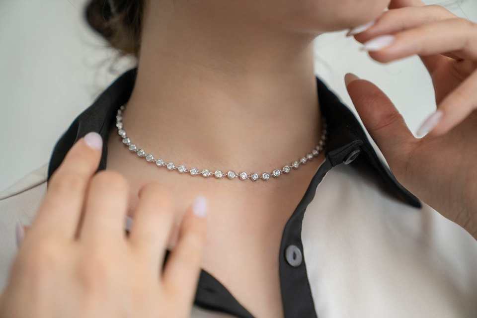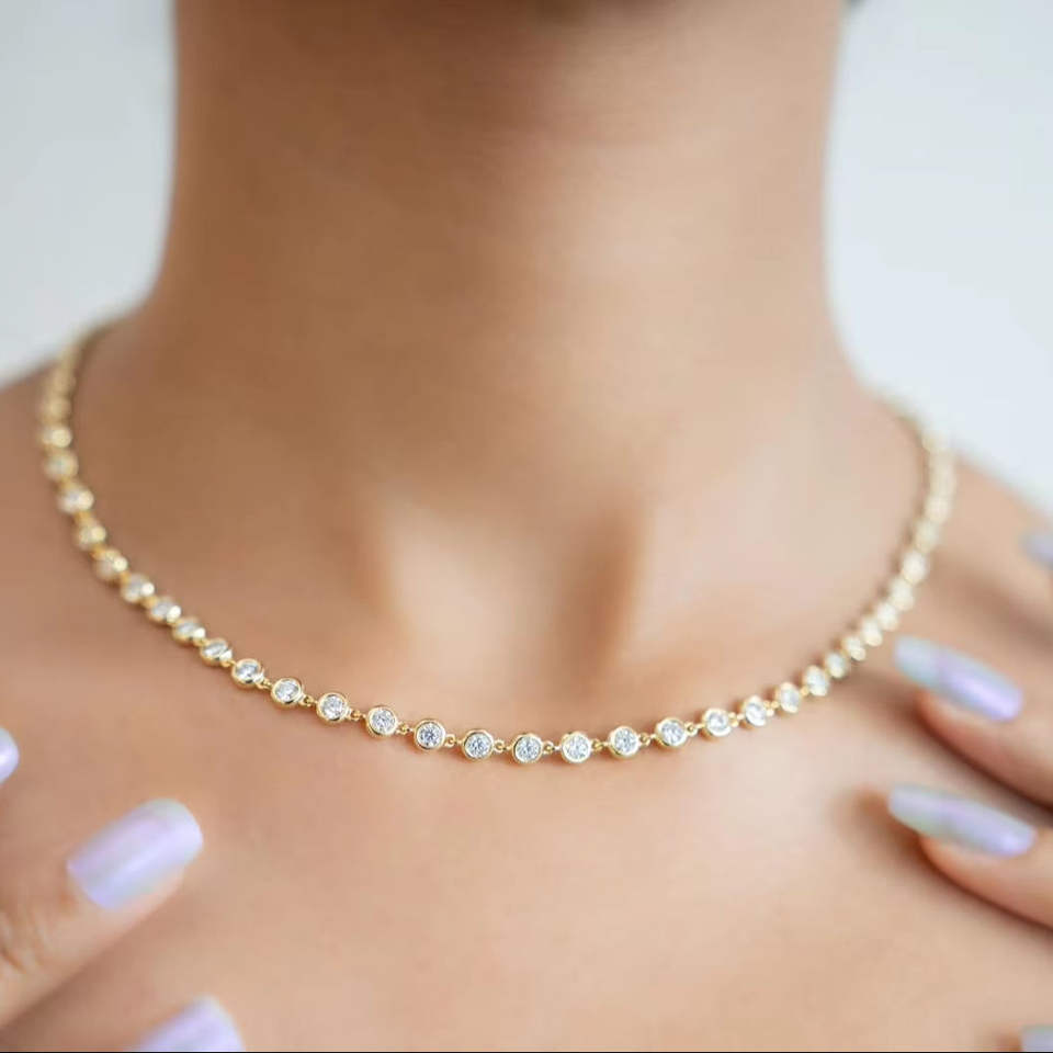 Collar de tenis de plata 925 con moissanita de corte redondo engastada en bisel, elegante, para aniversario, boda, fiesta, regalo de joyería para mujer