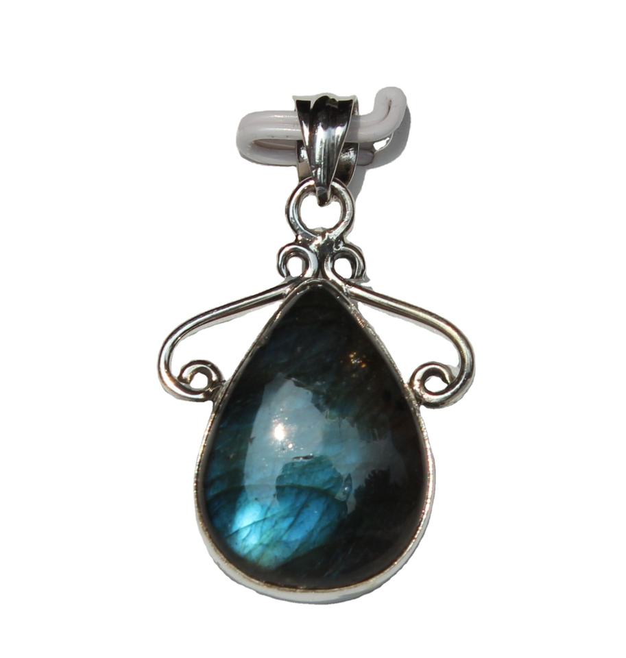 Colgante de Plata de Ley 925 hecho a mano Unisex, bisel de labradorita elegante, forma de gota, Piedras Naturales, moda curativa