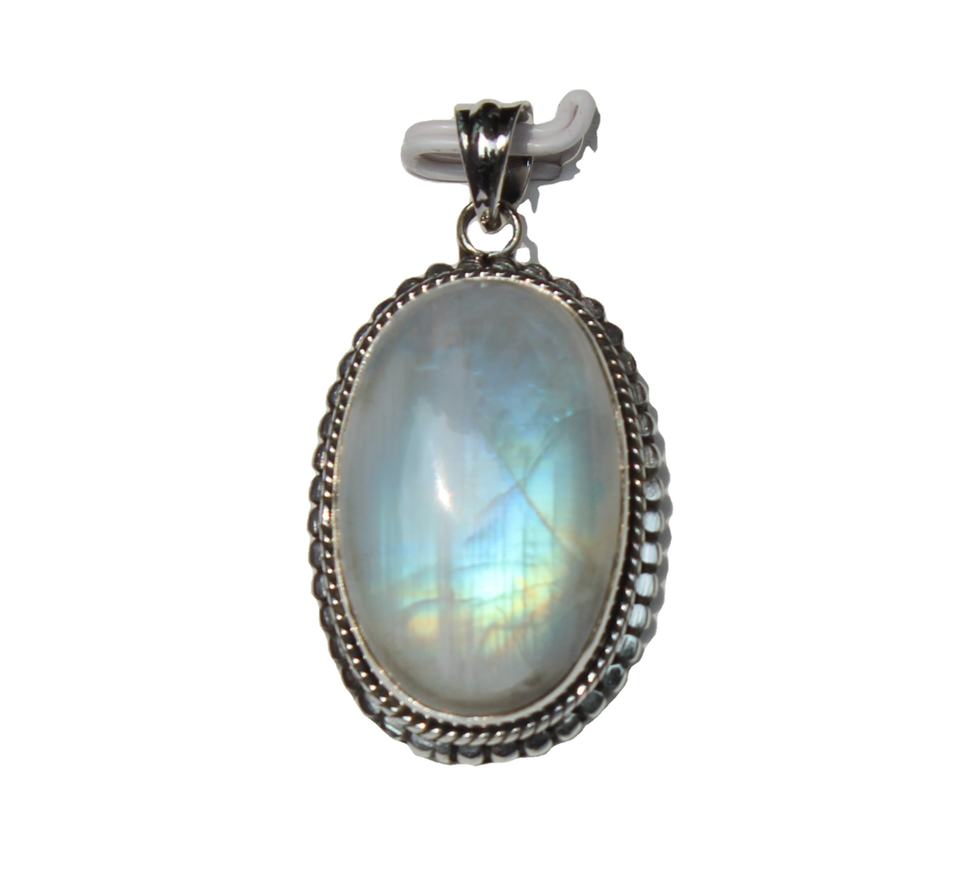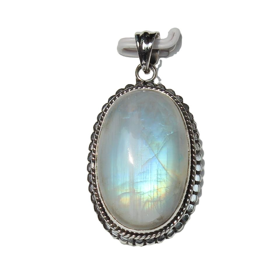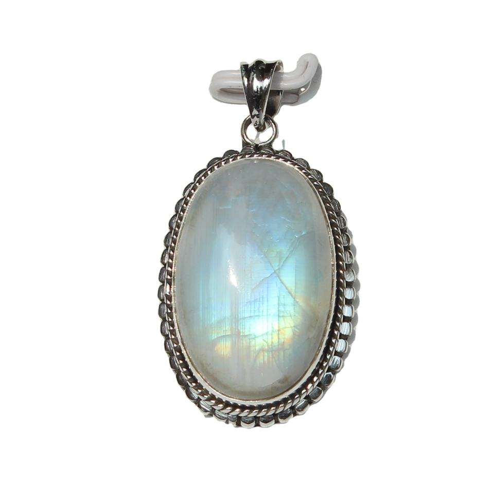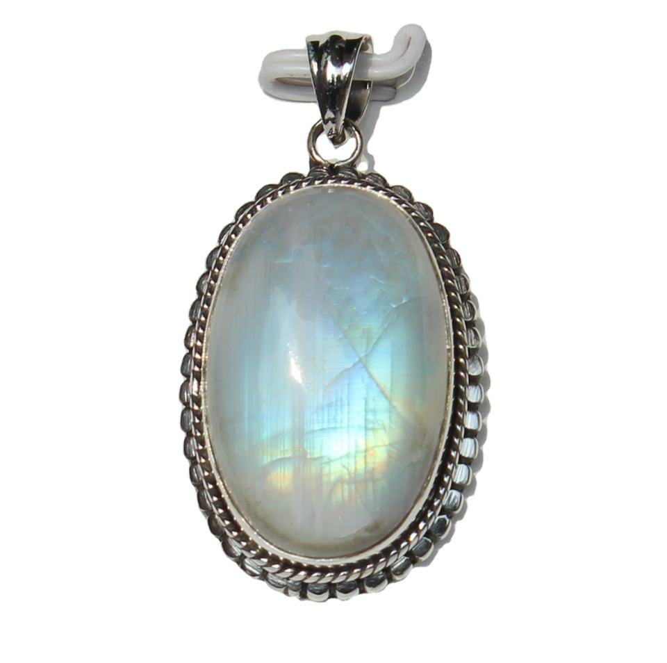 Colgantes de moda unisex hechos a mano de plata de ley 925, chapados en plata antigua estilo bohemio, con engaste de bisel de piedra lunar llamativa