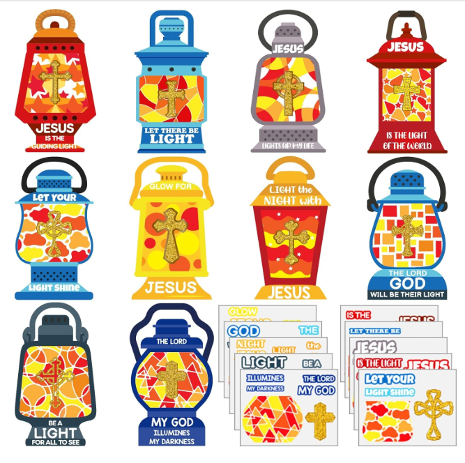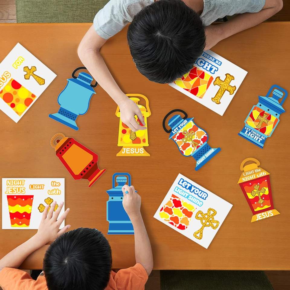 Pegatina de verso bíblico, tarjeta religiosa y pegatina, adornos cruzados, Kit de artesanía de lámpara de aceite DIY para Aula de Escuela Dominical