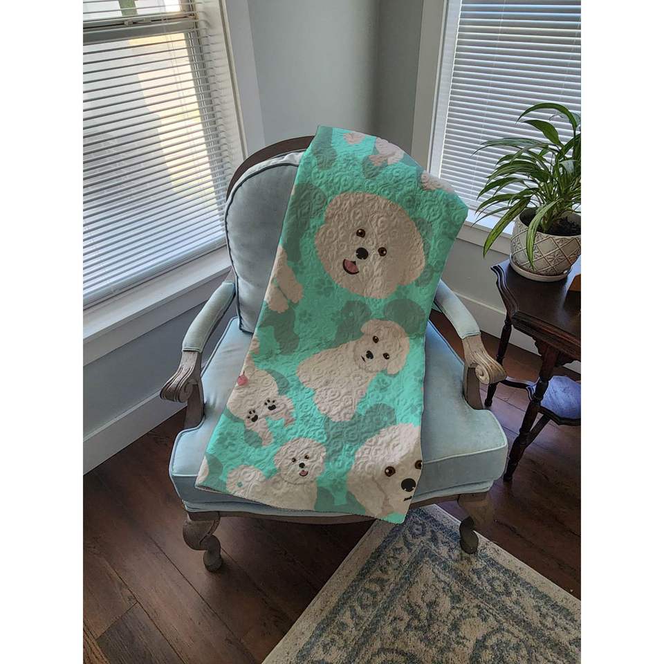 Manta acolchada con patrón de ilustraciones de Bichon Frise 50x60, suave y ligera para cama, sofá o sofá, producto de categoría PET