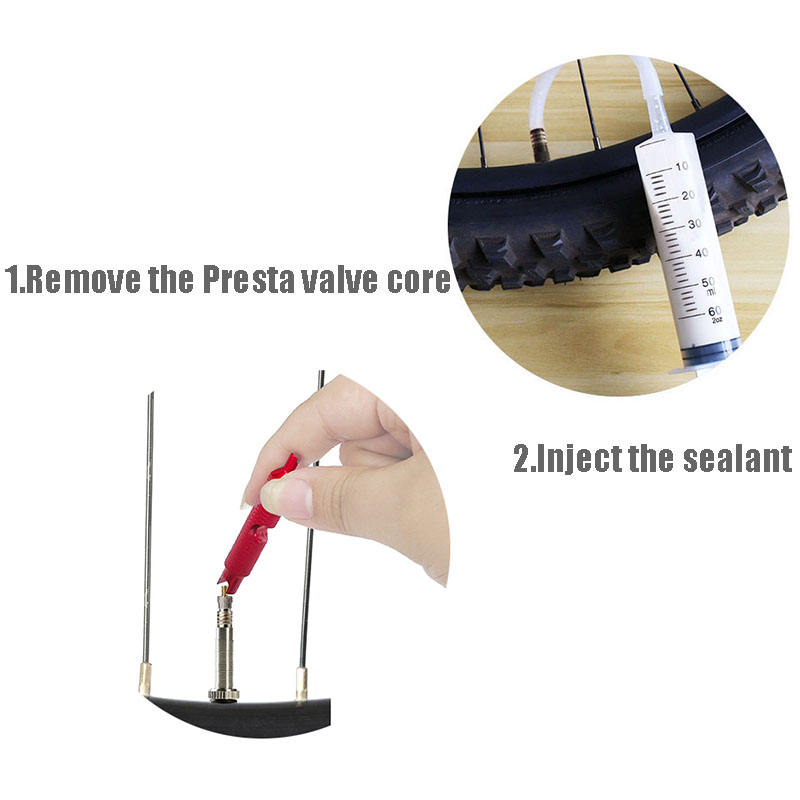 Inyector de Sellador para Neumáticos de Bicicleta sin Cámara, Apto para Válvulas Francesas/Estadounidenses Desmontables