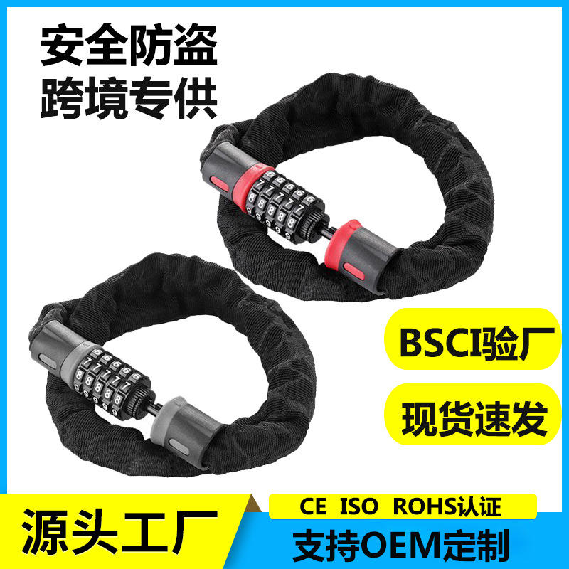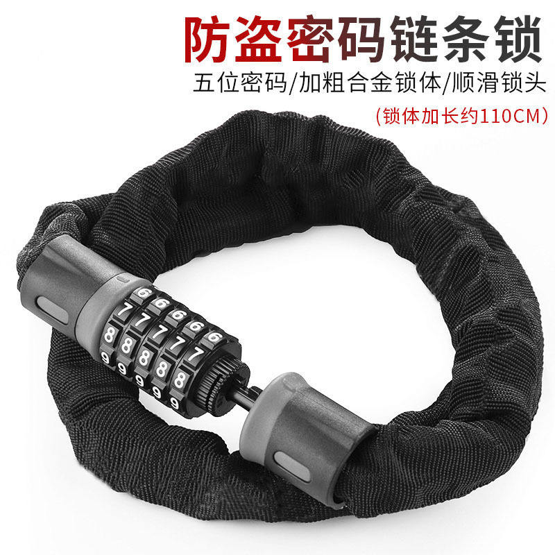 Candado para cadena de bicicleta, 110 cm, combinación de 5 dígitos, antirrobo, con cubierta de tela, para bicicleta, bicicleta eléctrica, puerta de motocicleta