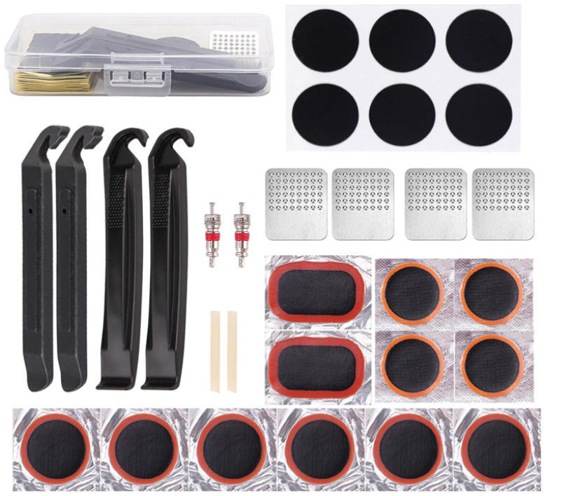 Kit de Parches Fríos para Bicicleta con Palanca de Neumáticos, Juego de Herramientas de Reparación Rápida de Neumáticos, Parches Fríos con Pegamento, Herramienta Combinada de Reparación para Bicicletas de Montaña y Carretera