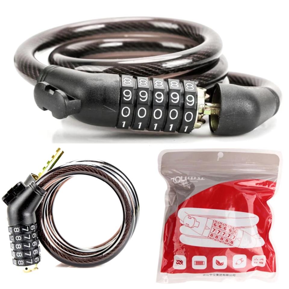 Candado para bicicleta de 120 cm con combinación de cinco dígitos, candado de cadena de alambre metálico para equipo de ciclismo