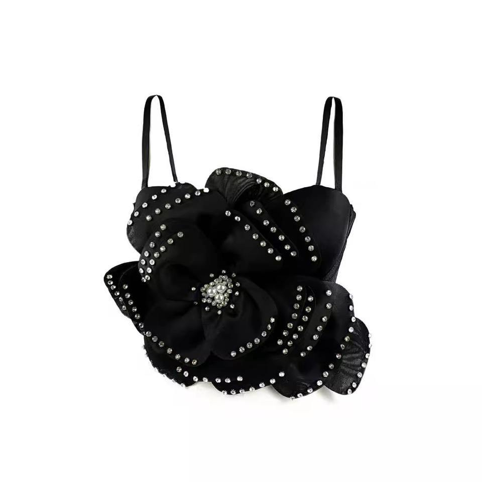 Top Halter Sexy de Moda para Mujer con Diseño Premium de Espina de Pescado, Multicapas y Cuentas Grandes