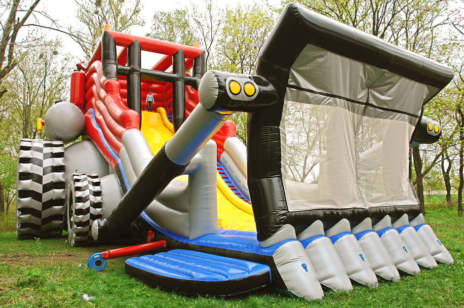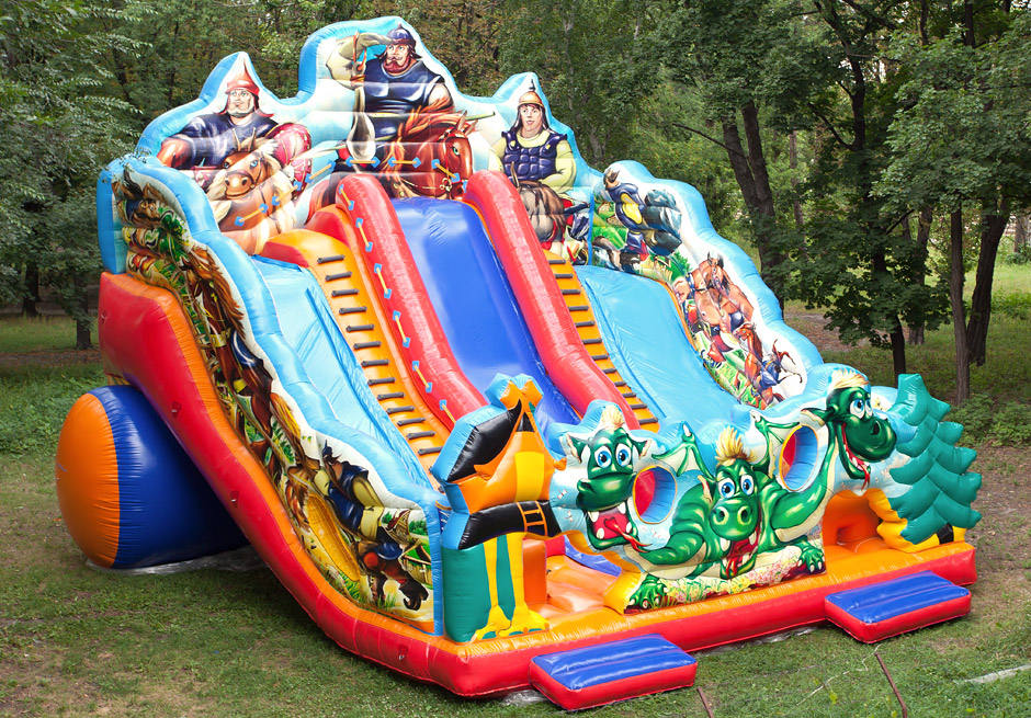 Gran Tobogán Inflable con Temática de Neptuno, el Dios del Mar; un Trampolín Inflable con Tobogán con Temática de Neptuno