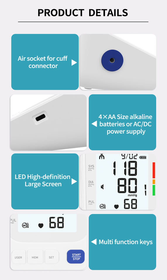 Monitor de Presión Arterial Inteligente con Pantalla Grande, Indicador de Presión Arterial de la OMS, Medidor de Presión Arterial