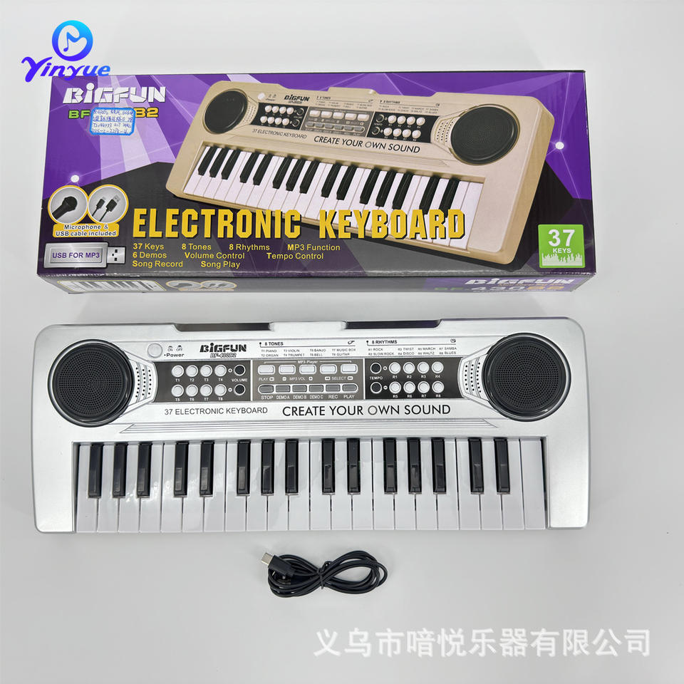 Teclado Electrónico Bigfun de 37 Teclas con Micrófono, Cable de Alimentación USB, Color Plateado Champán