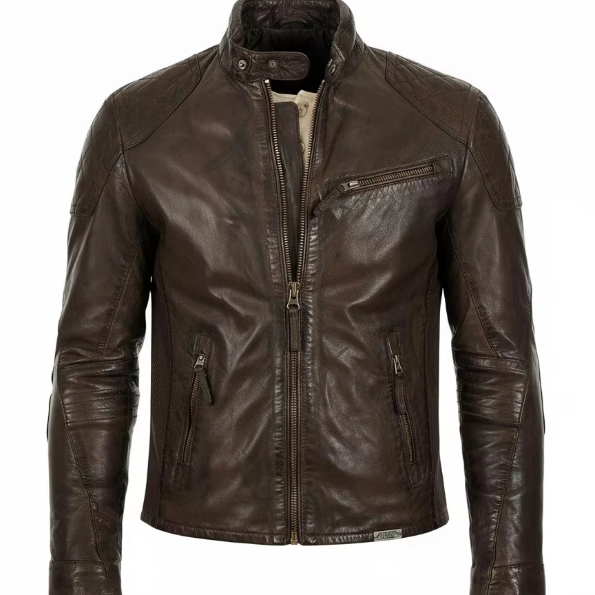 Chaqueta de cuero real para hombre con diseño de motorista, chaqueta de cuero de piel de oveja o vaca hecha en Pakistán para hombres, chaqueta RTS o OEM para motociclistas