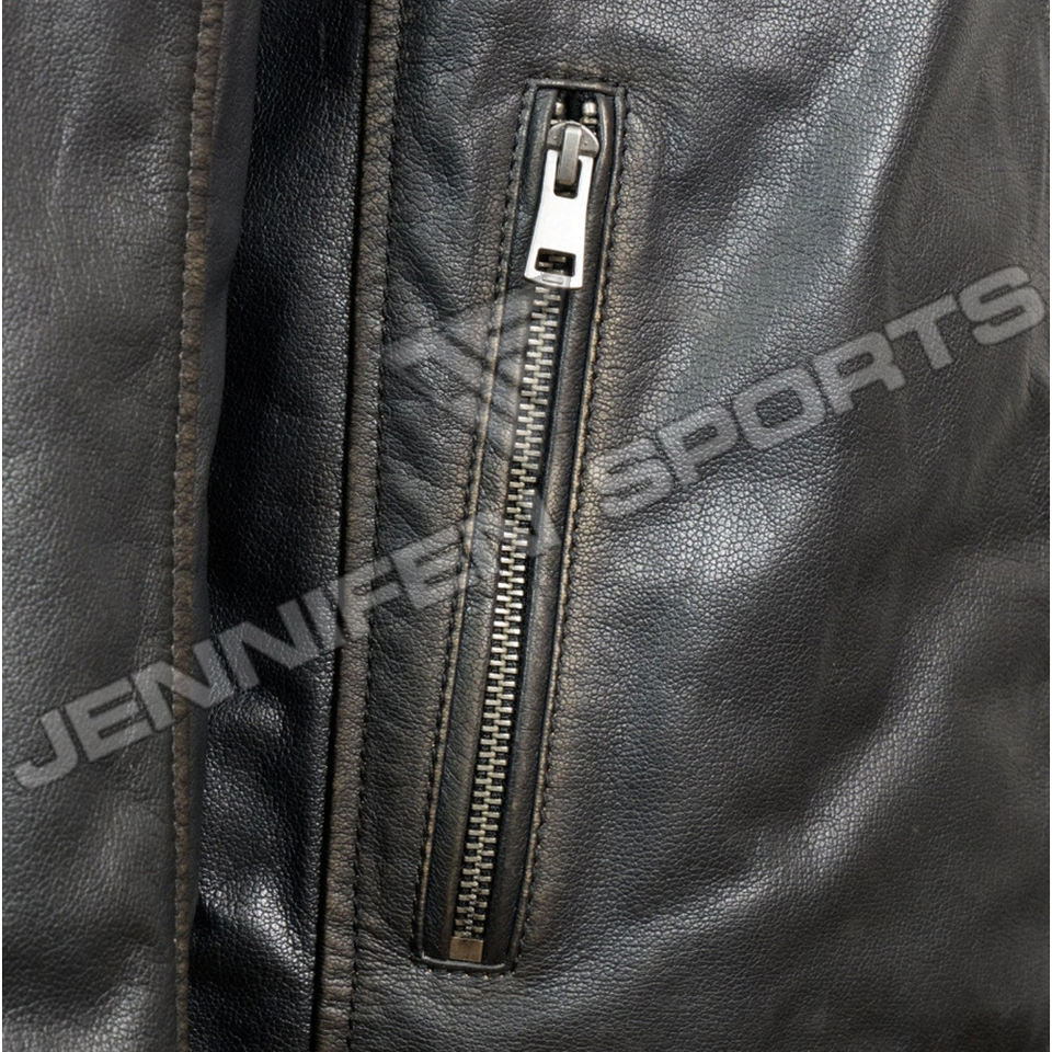 Chaqueta de motociclista para hombre de cuero genuino pecho delantero y bolsillos laterales cierre de cremallera hombros acolchados forro interior acolchado