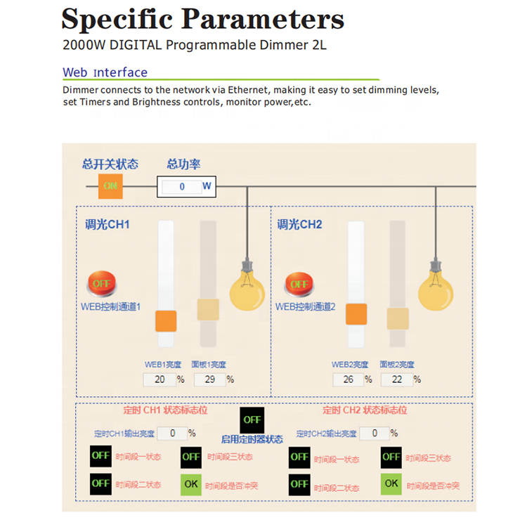 Controlador de Iluminación Digital LED Programable Bilihondim PLC, Regulador de Intensidad Ajustable de Alta Potencia 2KW 2 Canales para Granjas Avícolas