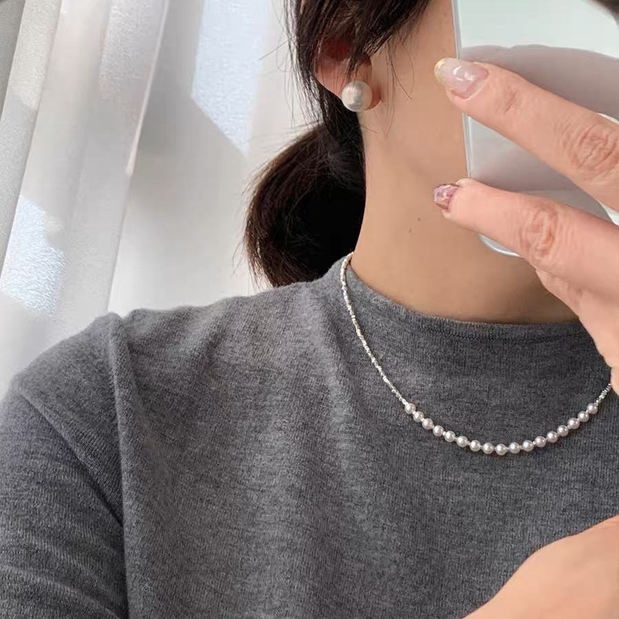Collar de Plata Rota Elegante de Alta Calidad con Sonrisas Estrelladas, Perlas Naturales y Cadena para Clavícula, Cadenas Finas