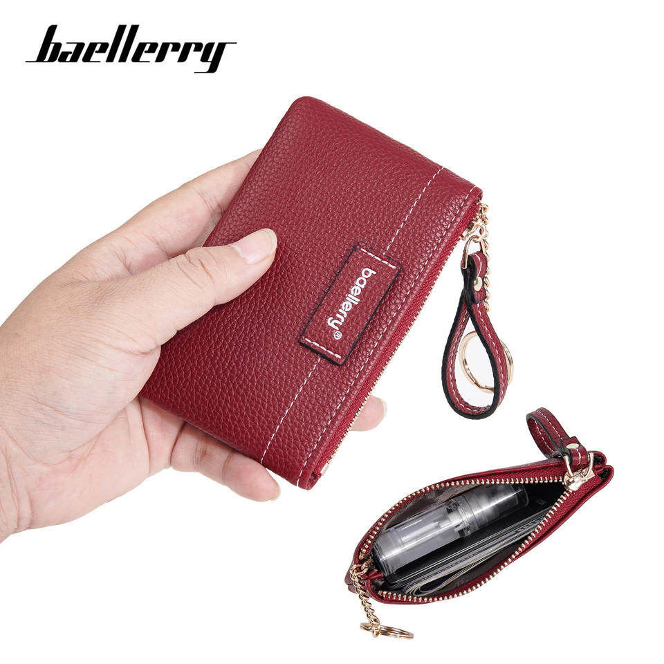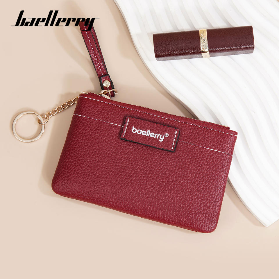 Cartera de Cuero PU con Protección RFID para Mujer, Marca Baellerry, Diseño de Moda, Color Rojo, Delgada y Compacta, Venta al Por Mayor, 2025