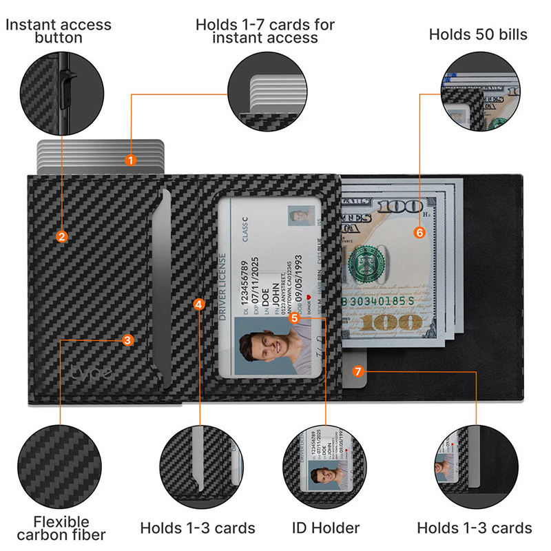 Portátil, Antirrobo, Delgado, BLOQUEO RFID, PortatarjetasCaracterística