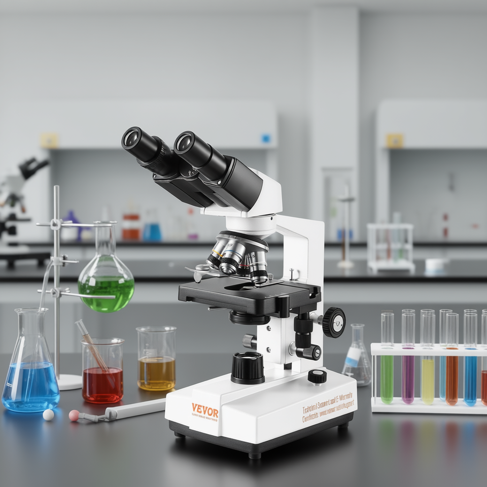Microscopio Compuesto Binocular 40X-2500X con Iluminación LED, Plataforma Mecánica, Enfoque Manual, para Uso en Laboratorio