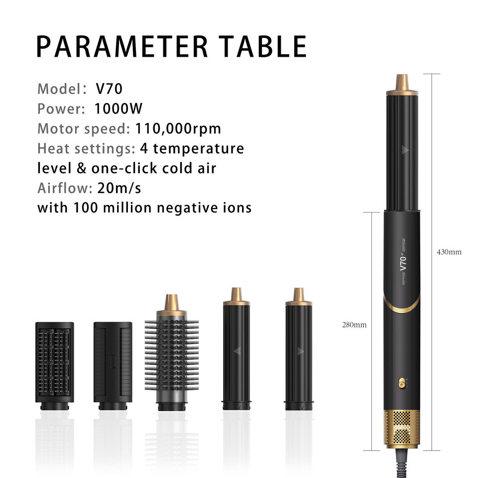 Uso:Rizador de pelo automático, secador, plancha, peine, boquilla anti-vuelco.
