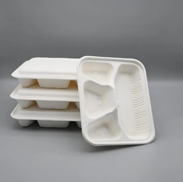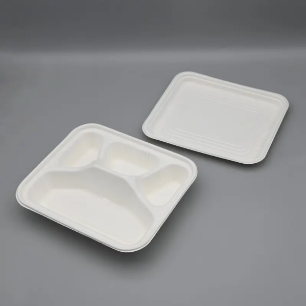 Lonchera Biodegradable de Bagazo de Caña de Azúcar con 4 Compartimentos para Entrega en Restaurantes, Platos Desechables para Fiesta al por Mayor