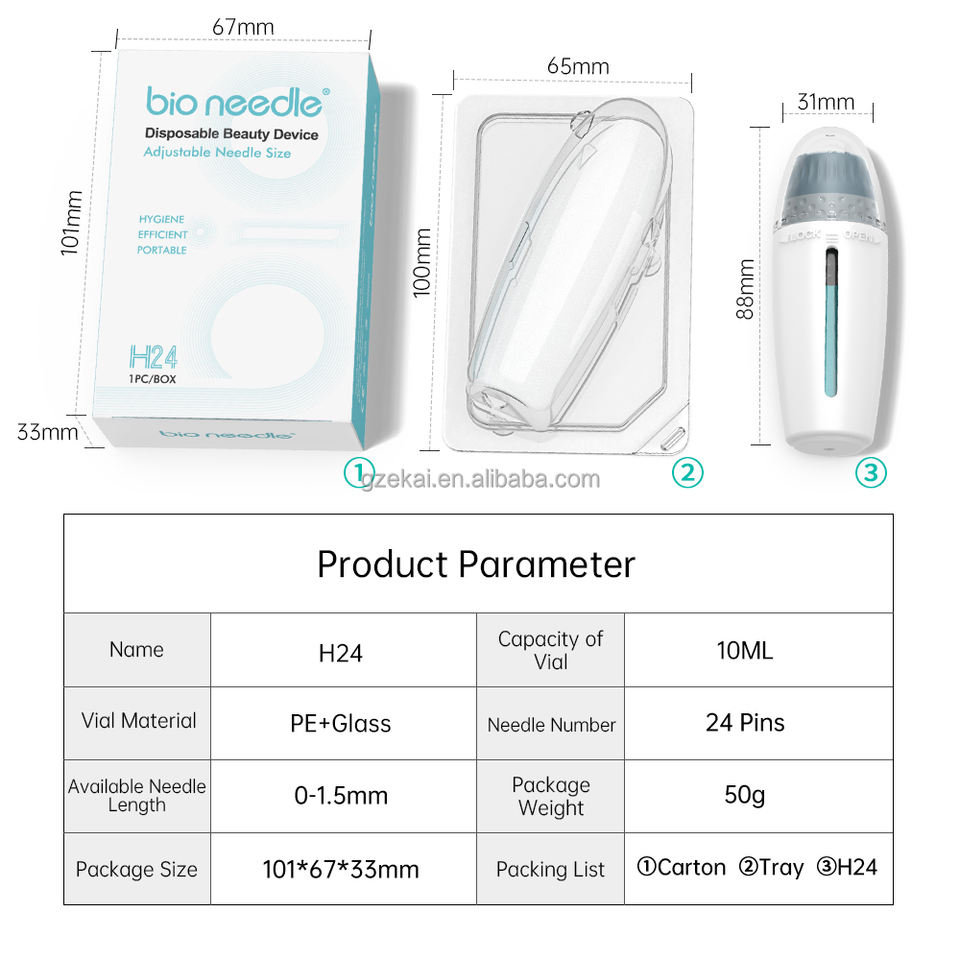 Agujas Bio H24 Derma Stamp Ajustables, Aguja Hydra de Titanio 10ML 24K Aqua Gold para Uso en Salón