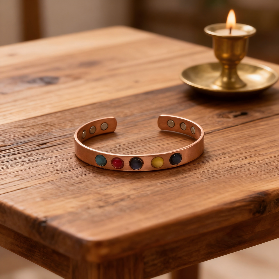 Joyería Biomagnética, Brazalete de Cobre Puro al 99.99%, Imanes para el Alivio de la Artritis, Brazalete Moderno y Elegante, Brazalete Suave con Piedras Naturales de Chakra