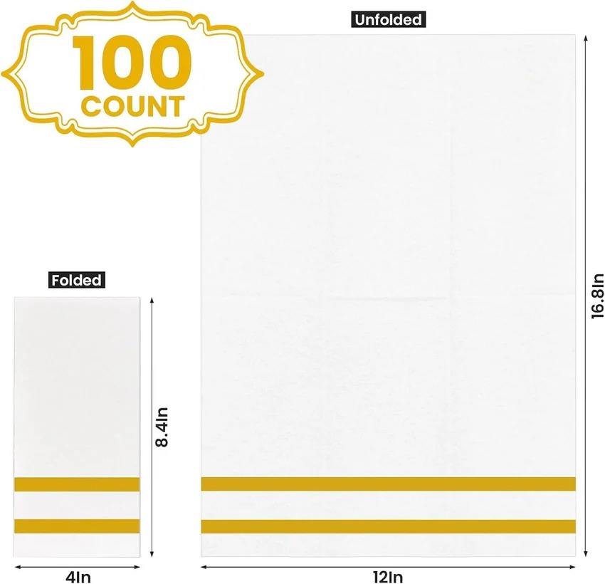 Biocean 1/6 Fold Gold Servilleta decorativa desechable de lino-Feel Dinner-100/Pack