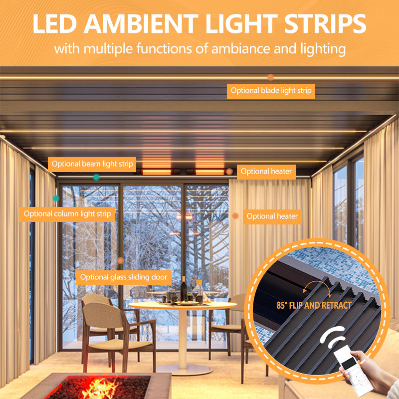 Sistema de Sensores Disponible:Pérgola Bioclimática Motorizada de Aluminio para Patio