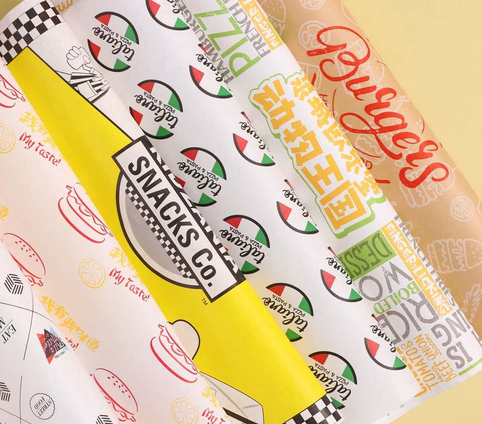 1-Nombre del artículo:Papel de Envoltura para Sándwiches Blanco Mg a Prueba de Grasa Impreso Personalizado