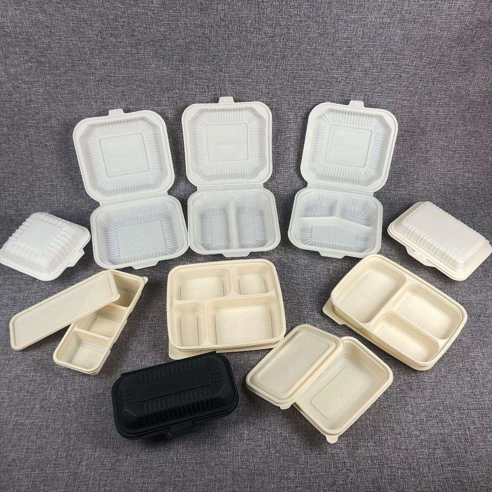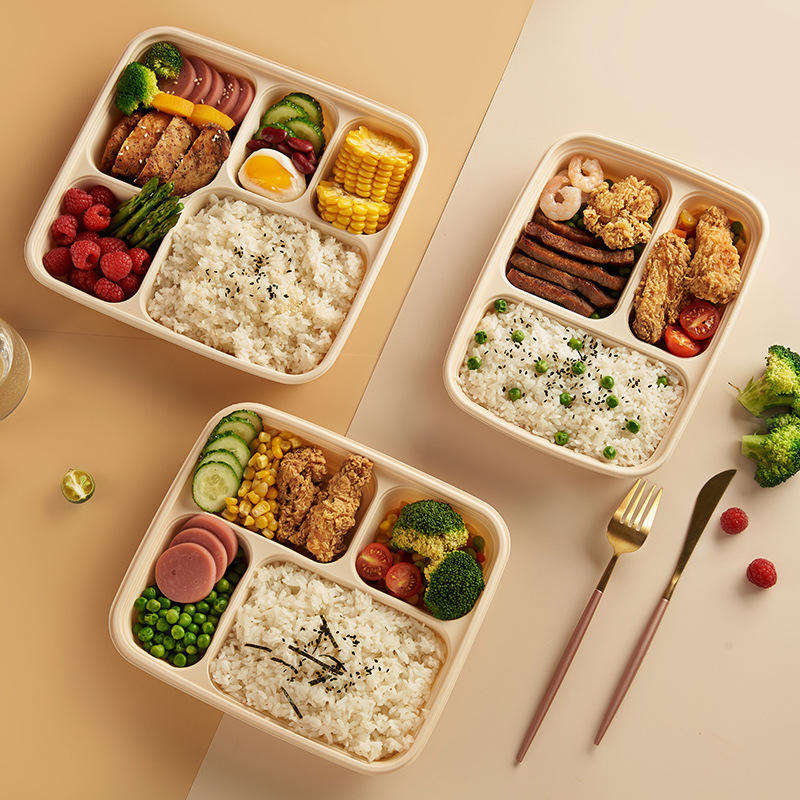 Contenedores de comida de plástico PLA biodegradables de 3-5 compartimentos, fiambrera de papel Kraft desechable para llevar hecha de almidón de maíz