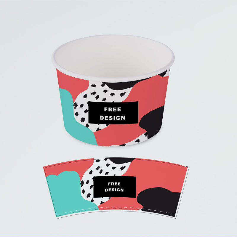 Vasos de Papel para Helado Biodegradables y Desechables Personalizados de 2.5oz 4oz 5oz 6oz 8oz 10oz al por Mayor con Tapas y Cuchara