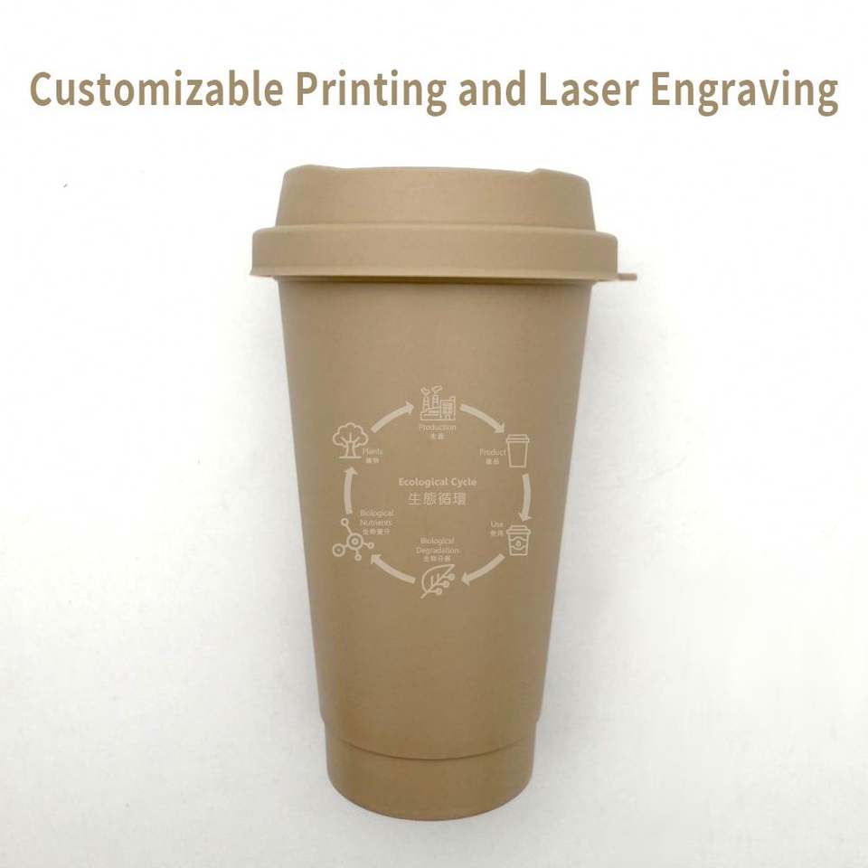 Vaso de Café Biodegradable y Ecológico con Impresión de Logotipo Personalizado, con Tapa y Reutilizable