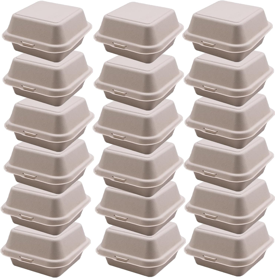 Contenedores de Alimentos Desechables Biodegradables y Ecológicos Tipo Concha de Almeja de 6x6 Pulgadas, Material de Bagazo, Resistentes al Agua, para Fideos