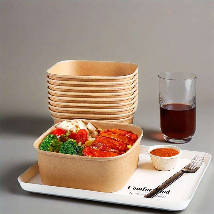 Tazón de Ensalada Rectangular Desechable, Ecológico y Biodegradable, de Papel Kraft, Contenedor de Alimentos para Llevar, Tazón de Papel Rectangular