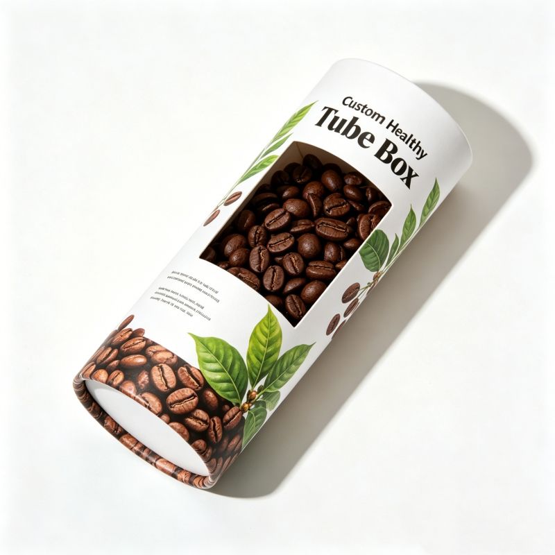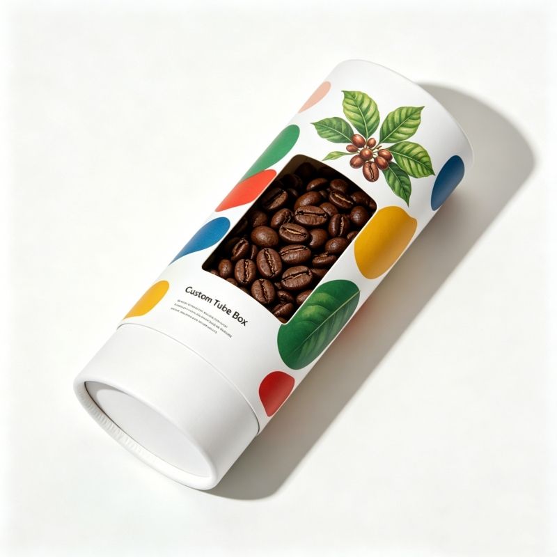 Tubo de Papel Cilíndrico Redondo Orgánico Biodegradable de Grado Alimenticio, Empaque Personalizado para Granos de Café, Té, Nueces y Alimentos Secos con Ventana de PVC