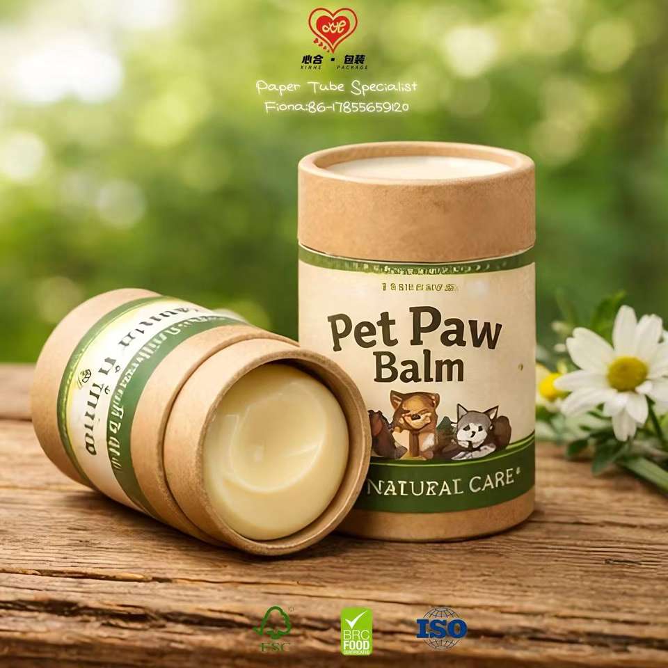 Desodorante en Barra en Tubo de Papel Kraft Biodegradable y Reciclable con Impresión a Cuatro Colores y Lámina Dorada para Bálsamo para el Cuidado de la Piel de Mascotas
