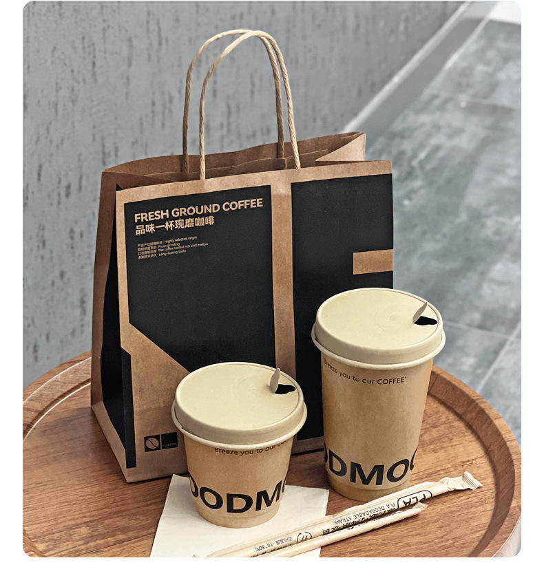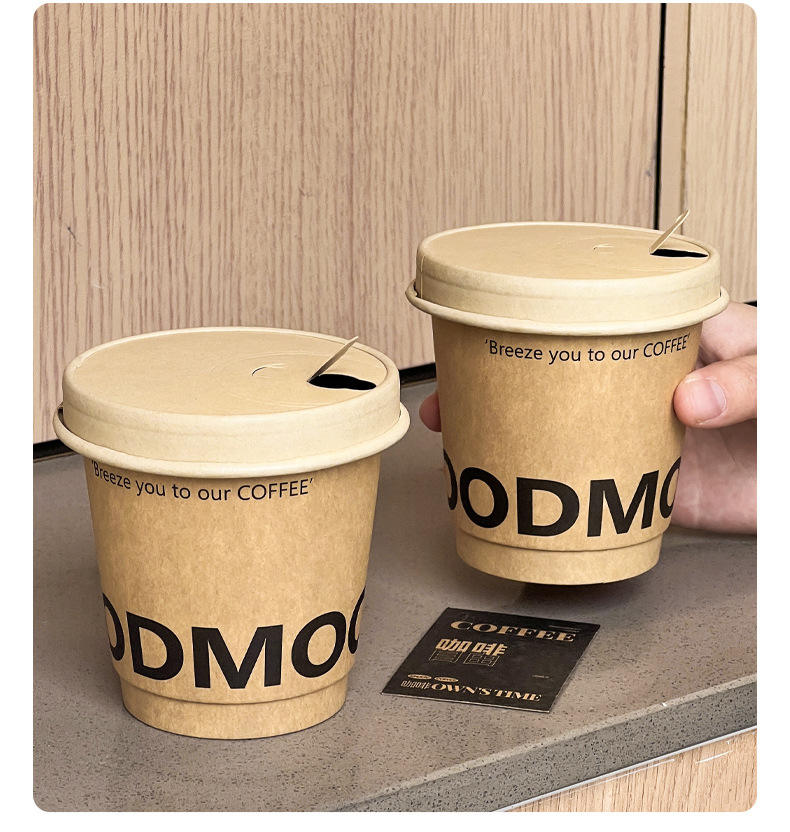 Vaso de Bambú Biodegradable con Diseño de Pared Ondulada y Tapas de Papel Kraft Desechables, Compostable, para Bebidas Calientes para Llevar, para Café y Té
