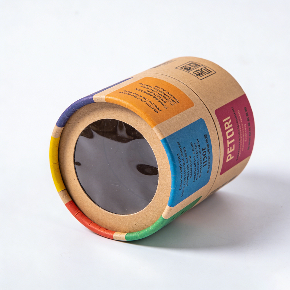 Tubo cilíndrico de cartón biodegradable con ventana transparente, tamaño personalizado, embalaje de papel para exhibición minorista de regalos