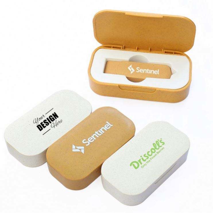 Set de Memorias USB Portátiles Biodegradables de Paja de Trigo - Almacenamiento Ecológico Promocional para Empresas con Opciones de Logotipo Personalizado