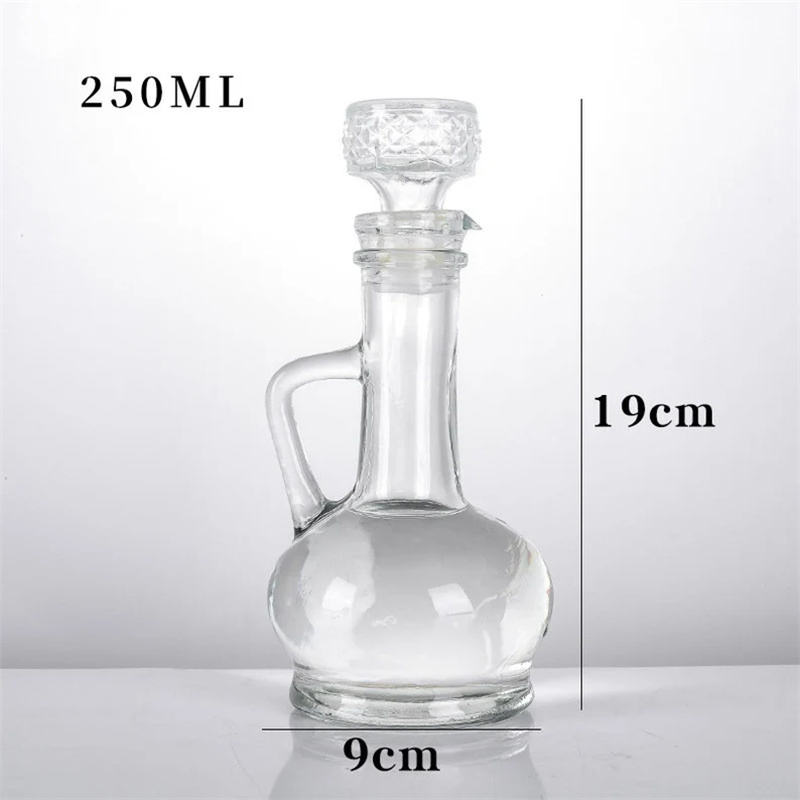 Olla de aceite de vidrio con pico de pájaro con tapón de goma, botella de vinagreta de mesa vacía y tapa, botella de condimento de vidrio de cristal para comida de mascotas