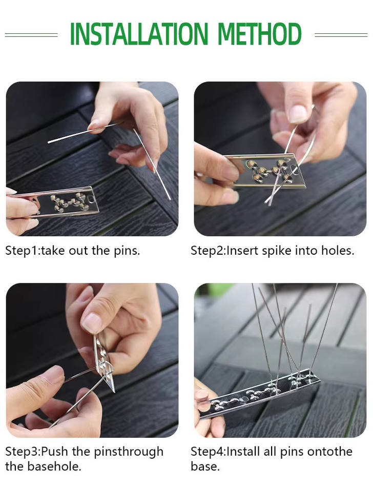 Nombre del producto:Púas de acero inoxidable para aves, disuasivo para palomas