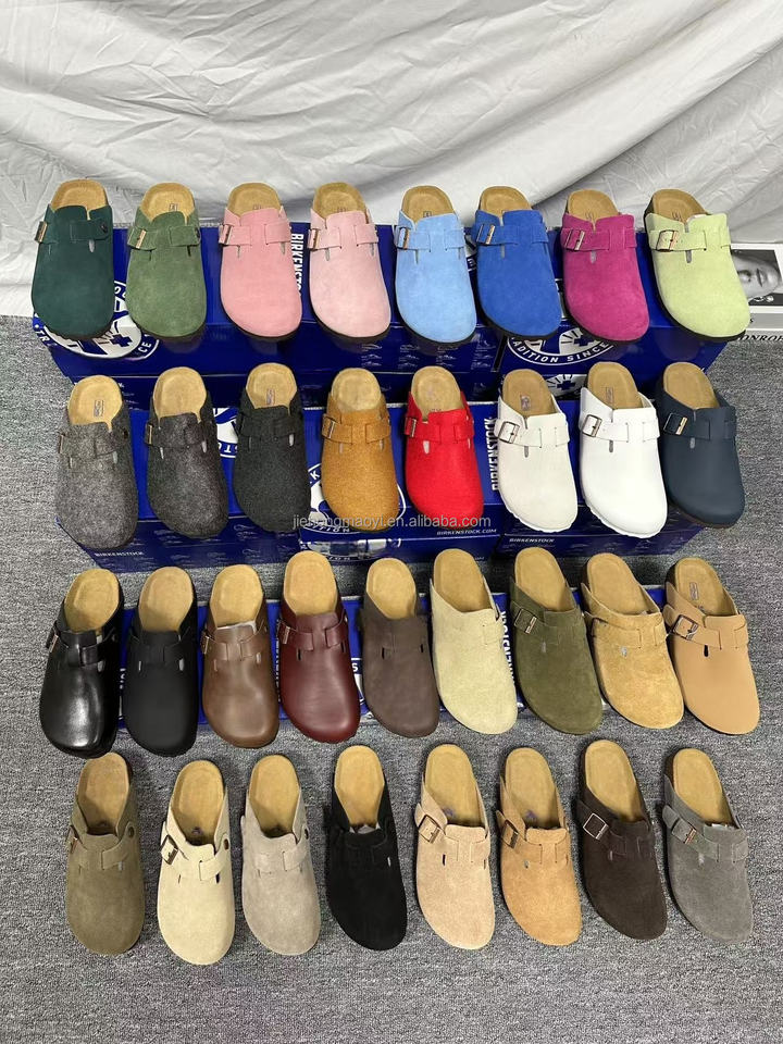 Birkenstocks Unisex, zuecos de corcho ligeros, cuero genuino, verano, bordado plano, zapatos deslizantes con punta cerrada para hombres y mujeres, sandalias