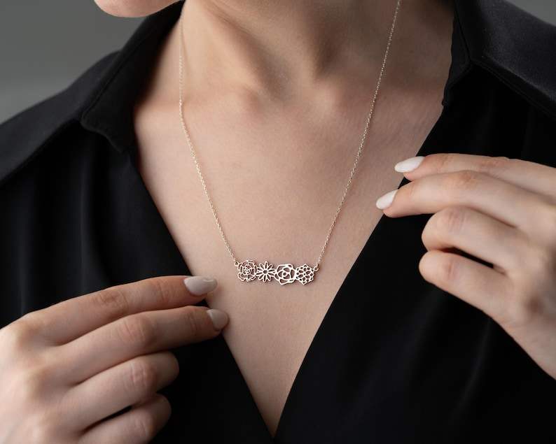 Palabra clave:Collar con Ramo de Flores de Nacimiento, Joyería Personalizada, Símbolo de Amor.