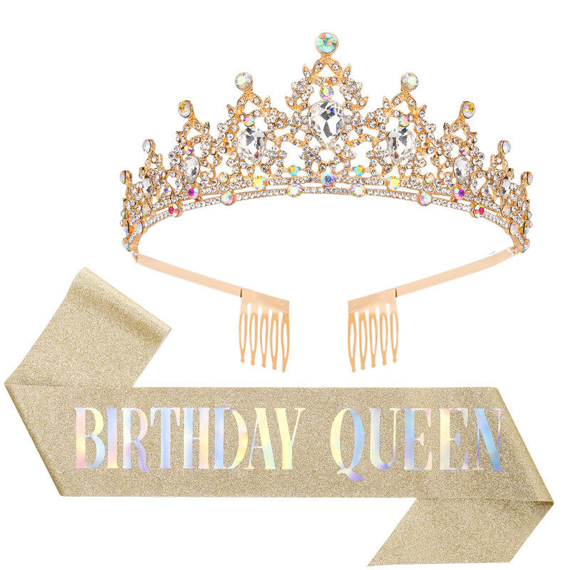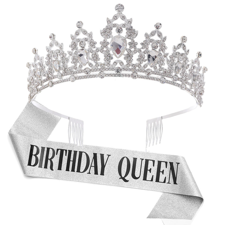 Cumpleaños reina faja Rhinestone Tiara Set diadema plata para mujer cumpleaños decoración niña brillo cristal accesorios para el cabello
